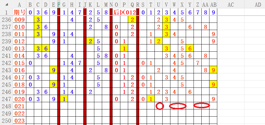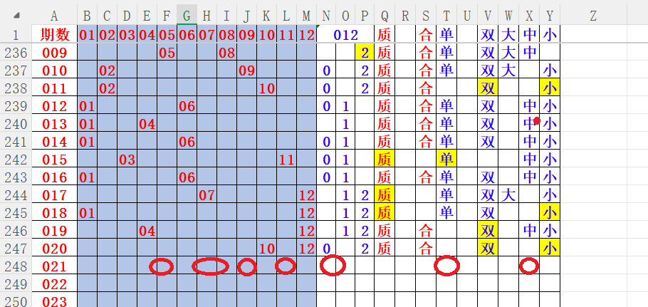 如上图4,012路分析012路,本期重点12路。重点  05 06 07 09 11