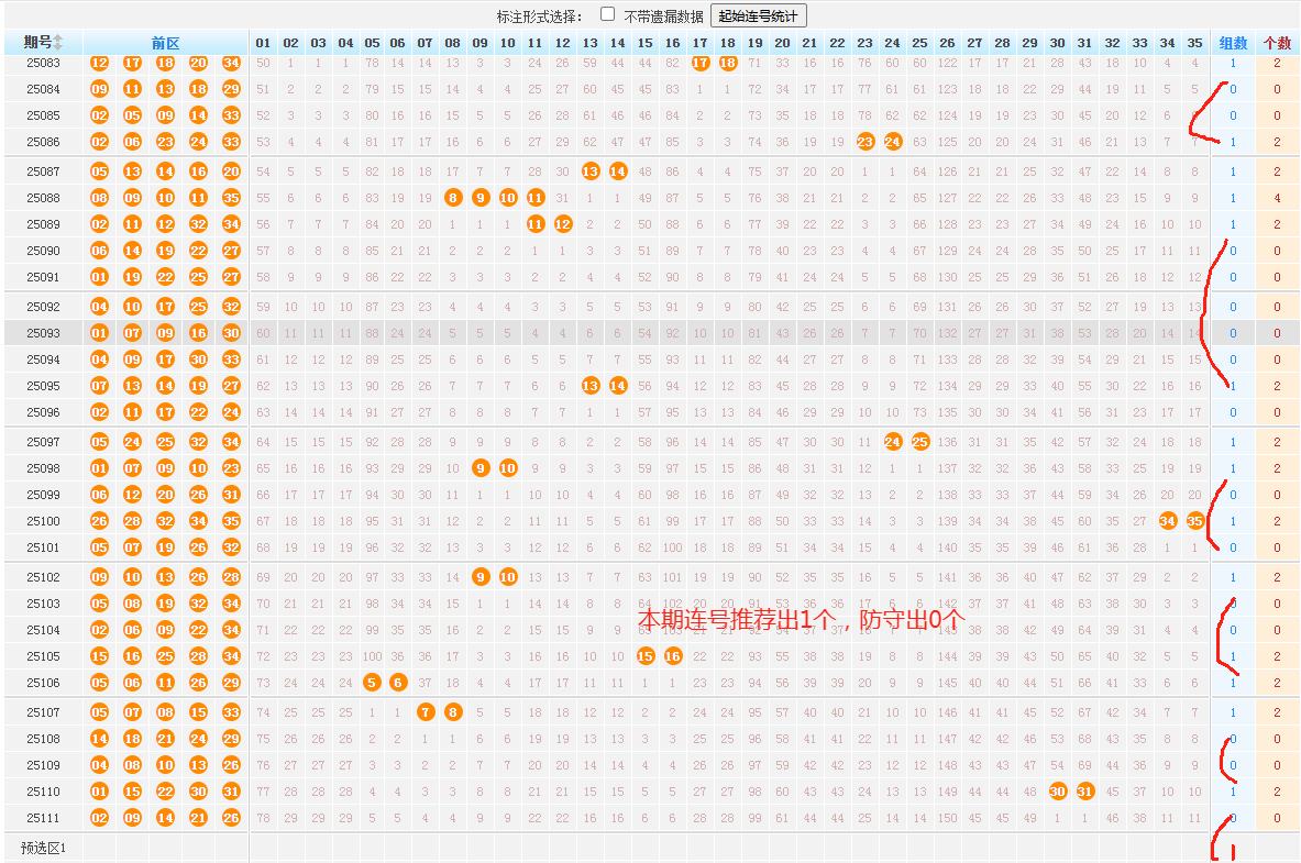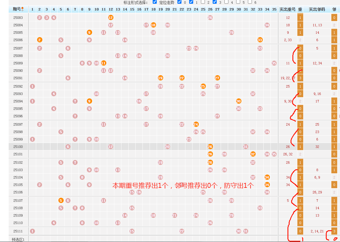 1、前区重号走势:上期前区开出0个重复奖号,近109期出号个数为:0-0-0-1-0-1-0-1-0-0-0-0-3-0-0-1-1-1-1-1-1-0-0-0-0-0-1-1-1-2-0-1-1-1-0-1-2-1-2-1-1-1-0-0-0-1-1-1-0-1-0-0-2-0-3-2-1-1-1-2-1-1-0-0-1-1-2-0-0-0-1-1-0-1-0-1-0-0-0-0-0-0-1-1-1-1-1-2-0-0-1-0-3-1-0-2-0-0-1-0-0-1-2-1-0-1-1-0-1-0-0-0-0-,根据出号规律,10000后紧随1-0-1-1-0-0-1-0-0-0-1-0-0-0-1-1-0-1-1-0-1-3-0-0-,本期推荐出1个,防守出0个,近期重号个数下降,本期推荐防出1-0个重号。