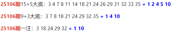 25107期15+5大底:2 4 6 8 13 15 16 18 20 21 23 24 27 28 29 + 1 2 6 10 12