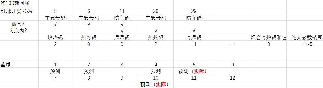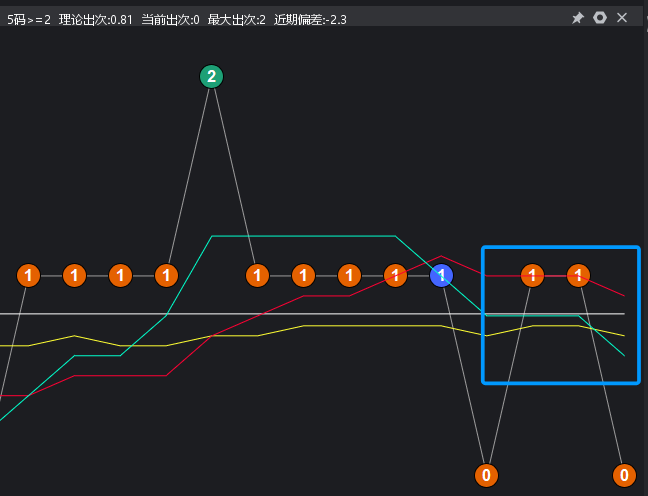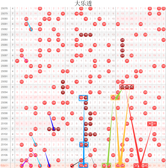 注意5个红球的组合冷温热码和值范围保持在-1~5