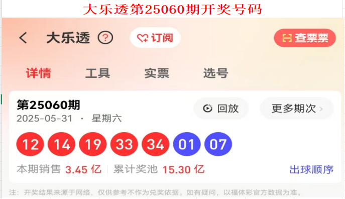 回顾上一期大乐透第2025060期开奖号码