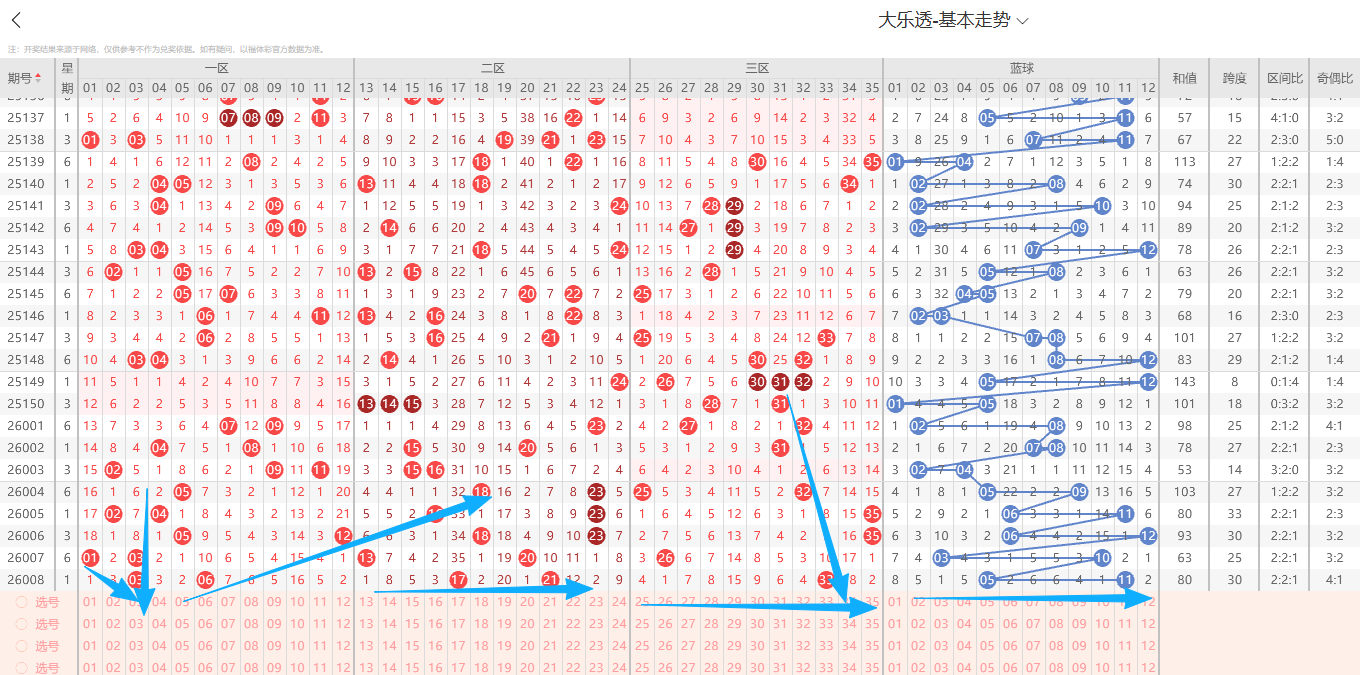 ③和值:结合对区间的比例数据来看本期和值参考40~80范围参考