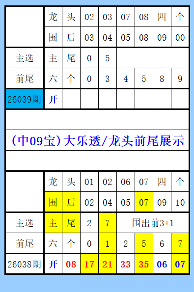 大乐透第26039期(综合图文),单选推荐,上期展示围出3+1