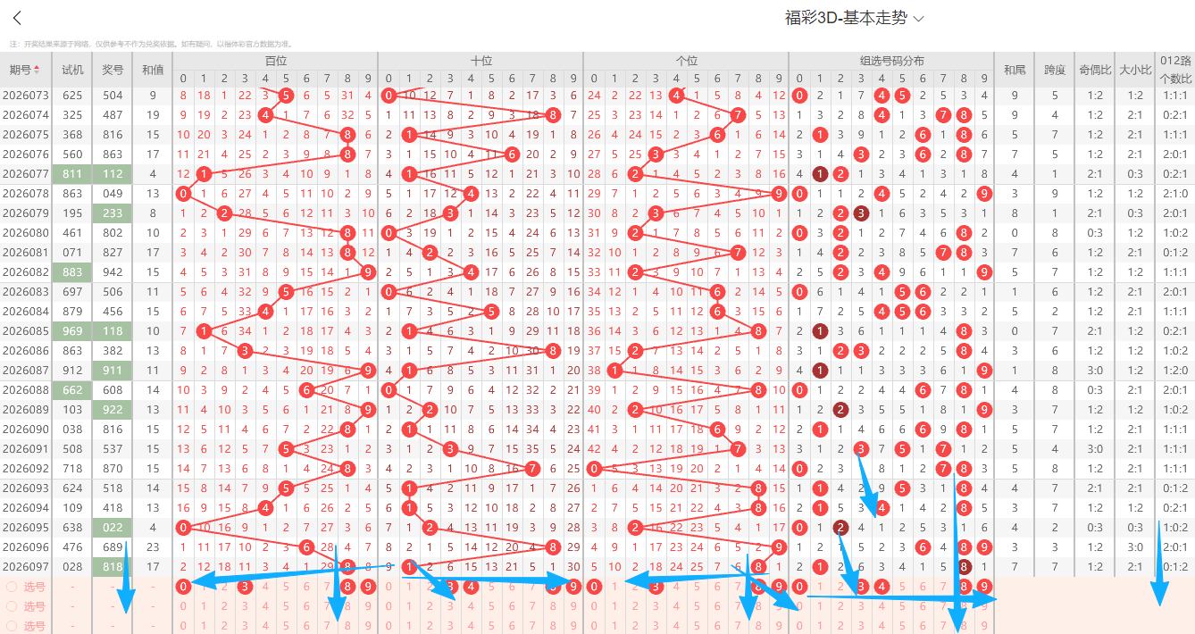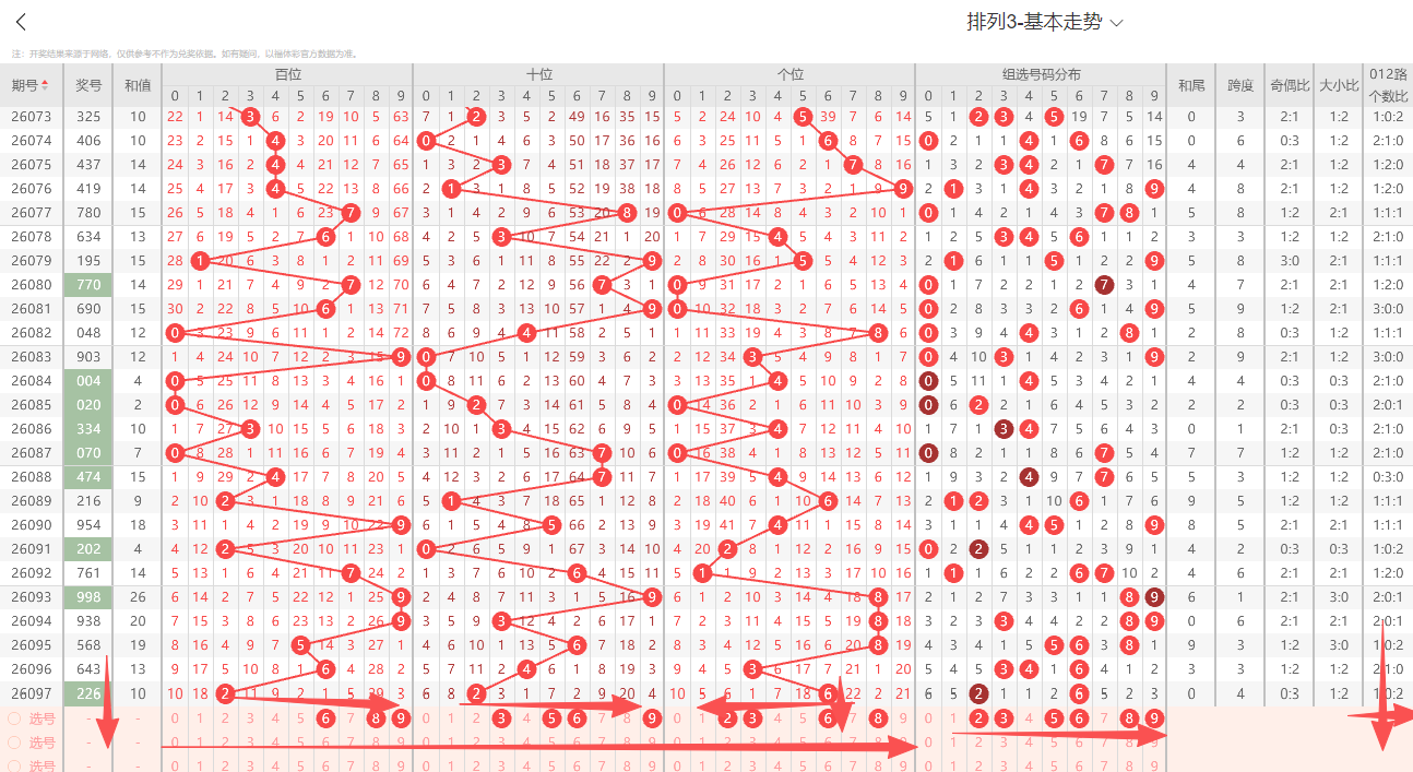 ③个位:上期开出大号偶数6号,上期出现奇偶互变开出偶数0路号码,根据历史记录012路及奇偶周期性规律变化的特征特点本期0路号码有开出的趋势2路号码注意适当预防。