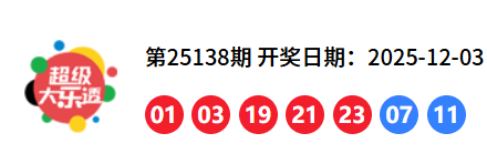 25138 期开奖:前区 01、03、19、21、23 + 后区 07、11