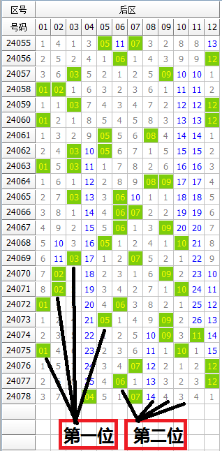 后区0路号码有3 6 9 12,后区1路号码有1 4 7 10,后区2路号码有2 5 8 11。