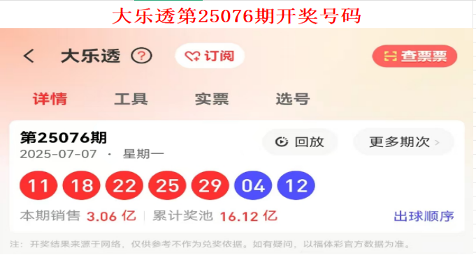 回顾上一期大乐透第2025076期开奖号码奖号码