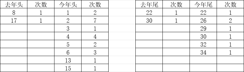 上期开出1枚隔期号,属于全年正常情况,对比双色球,大乐透的隔期号开出频率不高,基本上已0-1枚为主,本期经过全年及上年数据对比,本期开出0枚隔期号概率80%,开出2枚隔期号概率20%,需防守一枚隔期号。