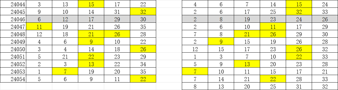 以上各小区号码数量是按照23001期至24054期抓取较为常见出号值,适用于单注及小复式、小拖胆票。