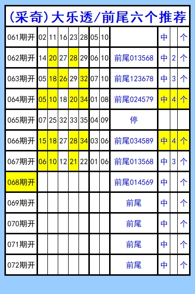 大乐透第068期图文(采奇坐标),前尾六个推荐