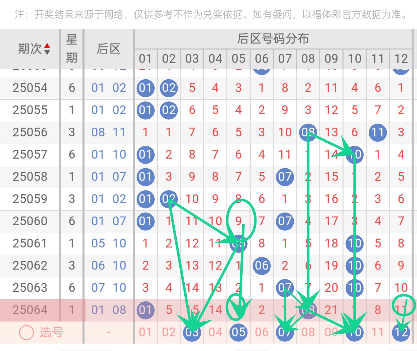3. 后区备选: