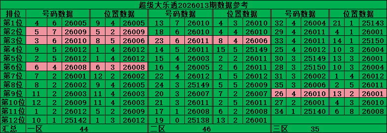 2025139-2026013期三区开出比例:44:46:35