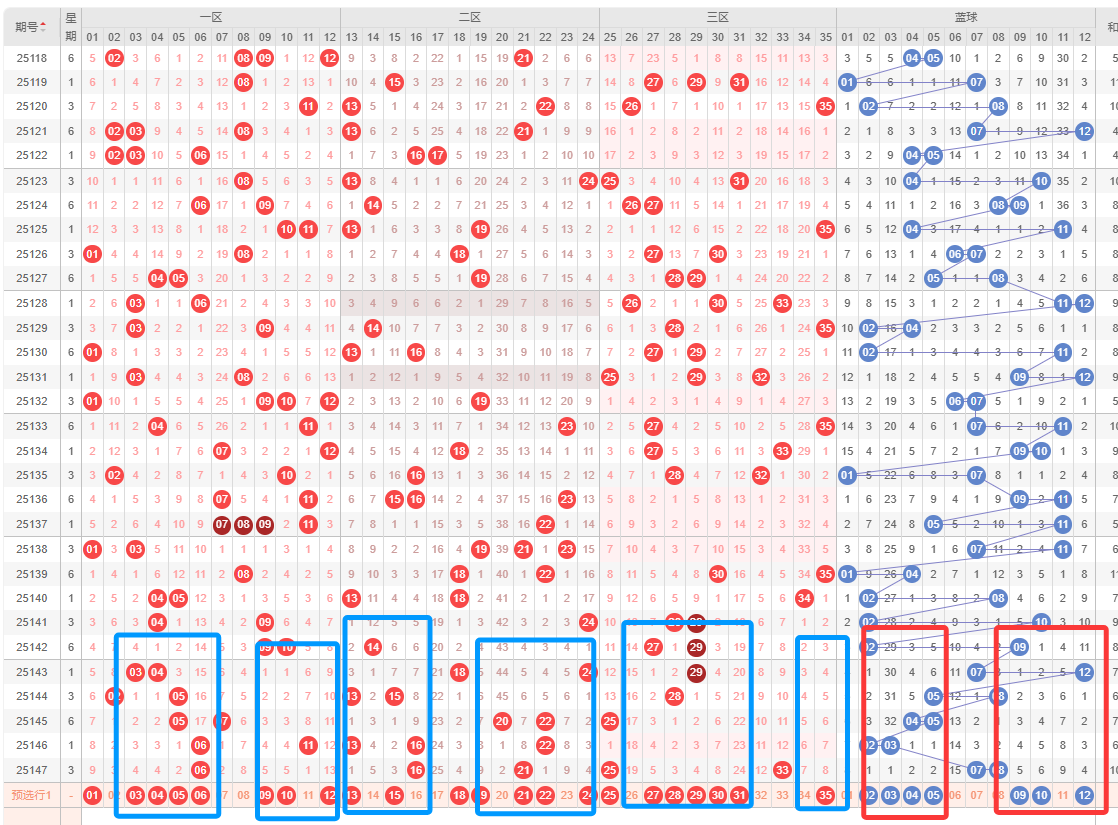 蓝球区,蓝球第一位开了奇数质数,整体上看...(其他思路留给会员文章哦)。