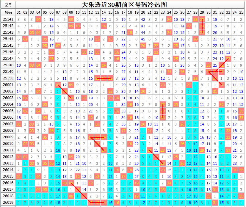 对前区大势的把握,少不了号码区间分布的情况。