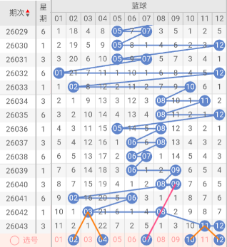 结合蓝球走势,推荐关注号码:02、04、07、10、12。