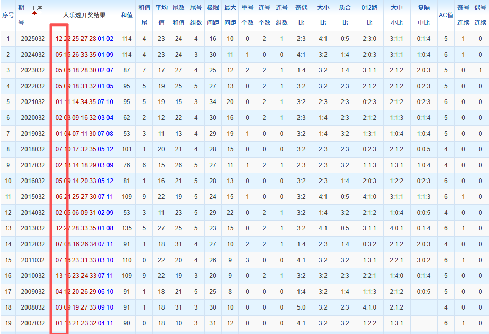 通过观察,我发现往年同期的开奖数据与本期号码之间存在显著关联。具体来说,在前区号码中,从第一位至第五位,通常会有约三个位置上的数字与往年同期相同位置的号码一致;而后区号码中,也有多期开奖结果直接包含了往年同期的数字。因此,我们可以借助往年同期各位置上的号码,作为分析本期开奖情况的重要依据。在此基础上,还可结合往年同期的其他相关条件,进行综合性的号码组合推荐。