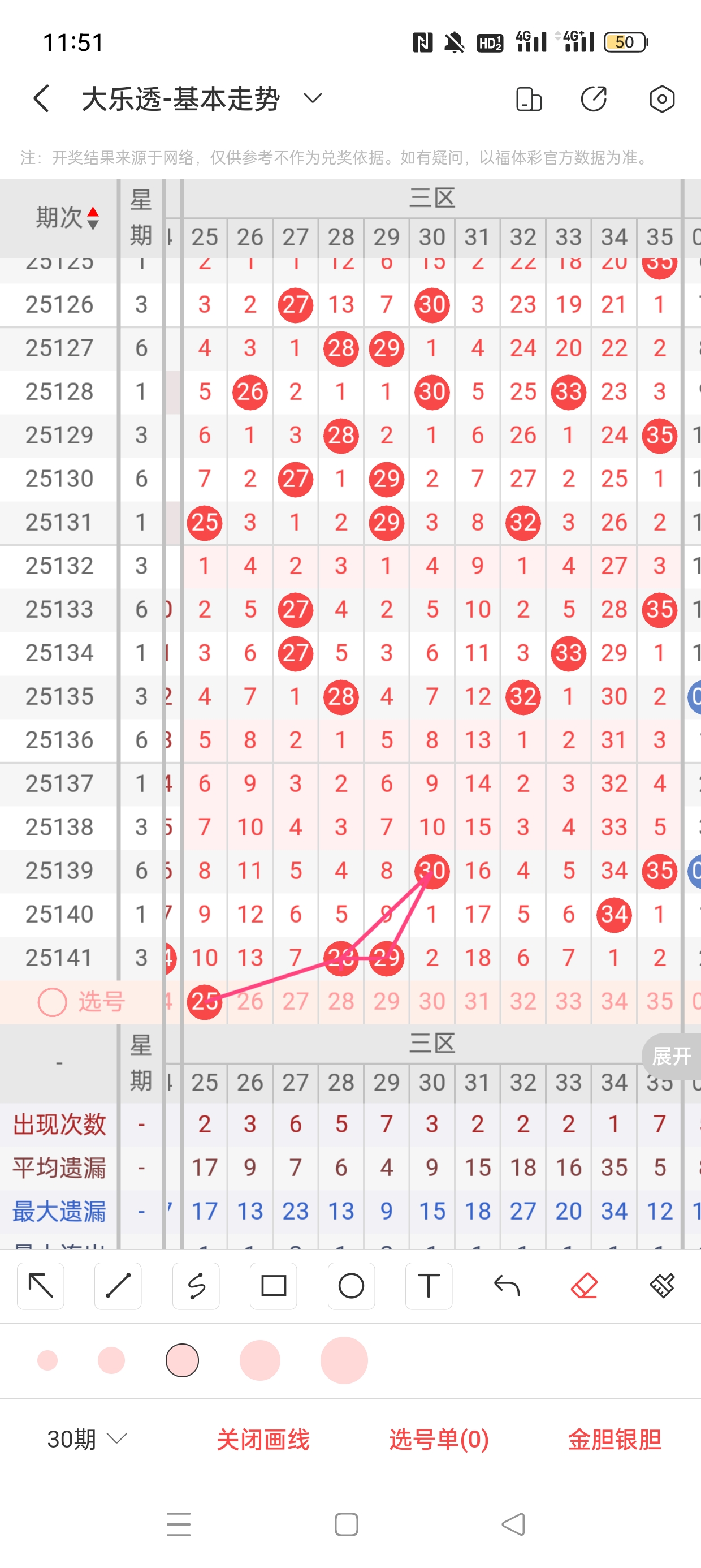 三区(25-35)近130期本区邻孤传56邻102孤10传,孤号热度高,本期着重邻传。近130期本区012路46:55:67,2路热度高,本期着重0/1。25已遗漏10期,与28之间呈现向左遗漏递减态势,需防。