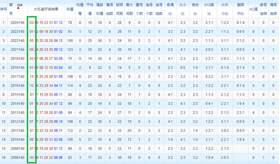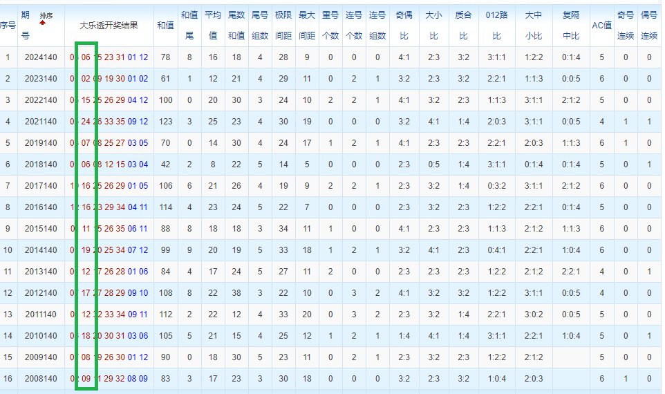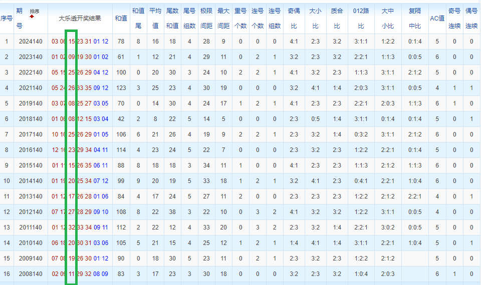 通过观察,我发现往年同期的开奖数据与本期号码之间存在显著关联。具体来说,在前区号码中,从第一位至第五位,通常会有约三个位置上的数字与往年同期相同位置的号码一致;而后区号码中,也有多期开奖结果直接包含了往年同期的数字。因此,我们可以借助往年同期各位置上的号码,作为分析本期开奖情况的重要依据。在此基础上,还可结合往年同期的其他相关条件,进行综合性的号码组合推荐。