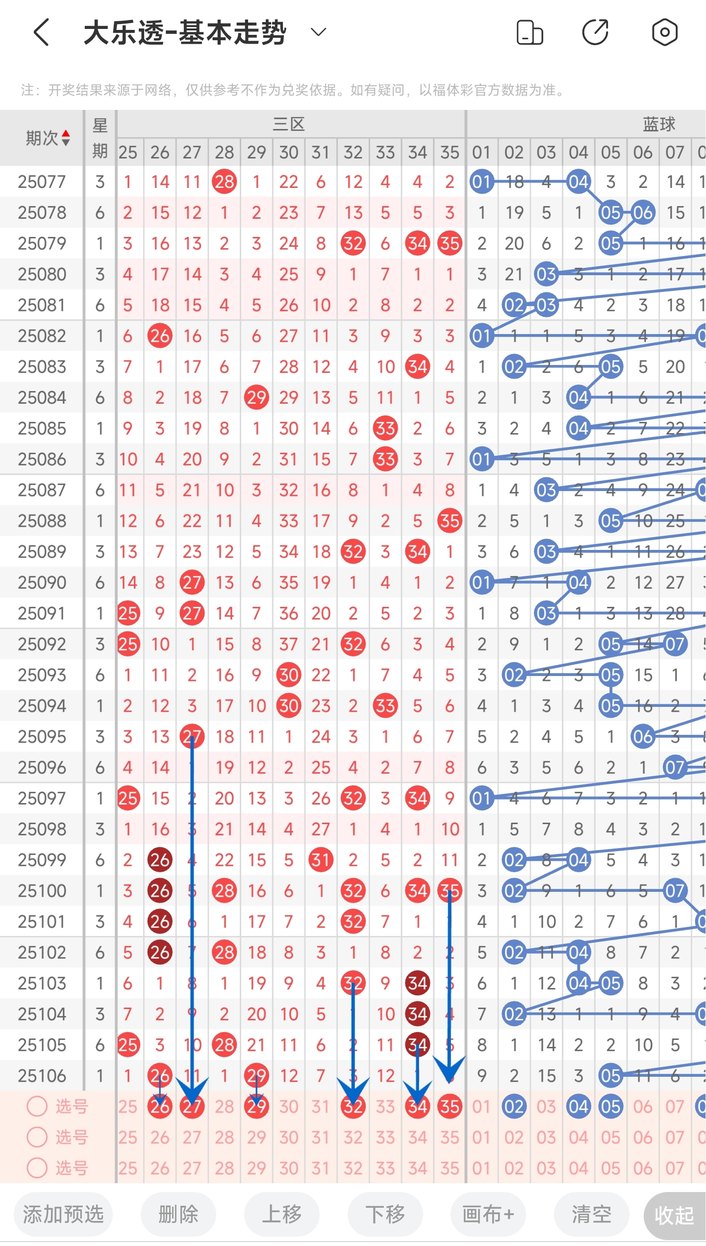 25097期大乐透文章推荐中命中2532343个红球,01一个蓝球。