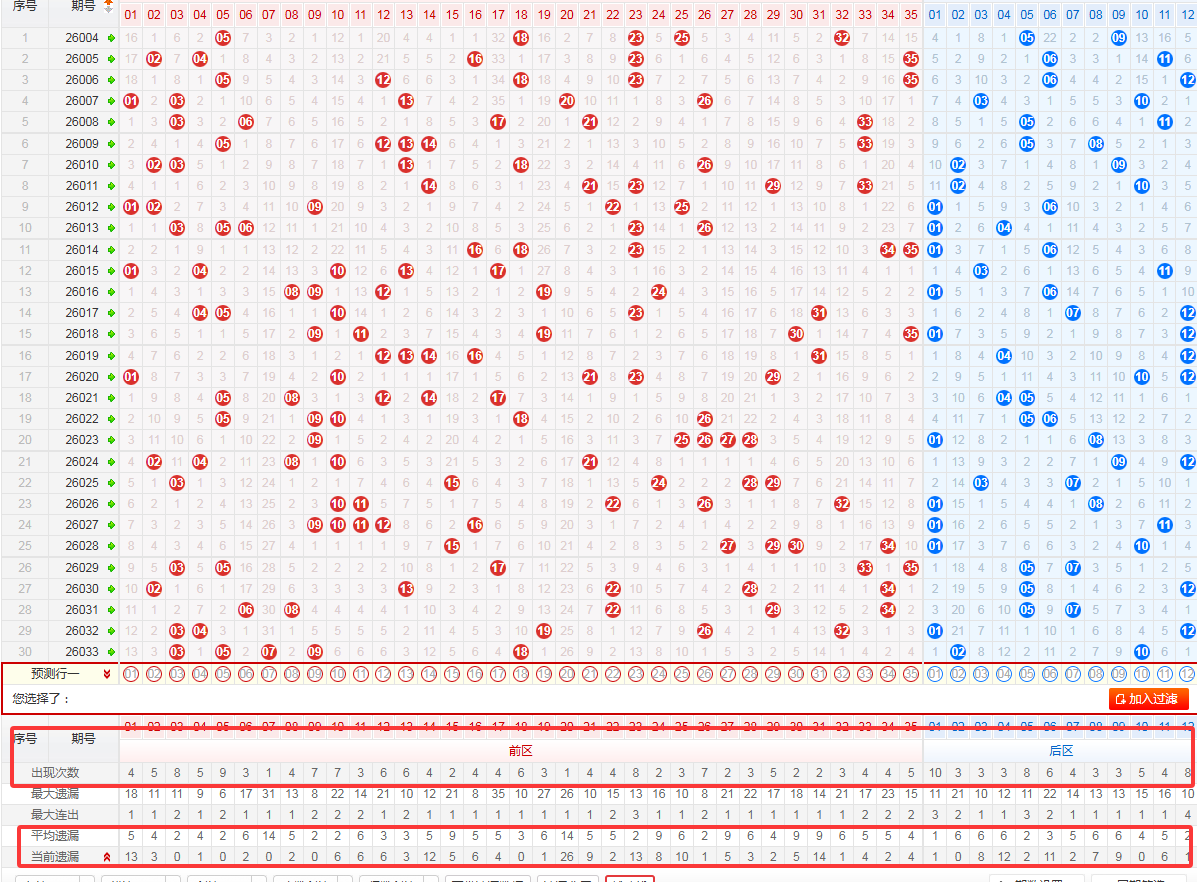 (二)取前区近100期优势号码15个和劣势号码8个