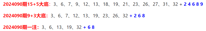 2024091期9+3大底:2、5、11、14、18、21、25、30、31 + 2 3 6