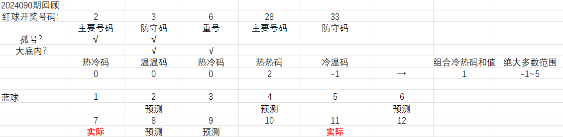 注意5个红球的组合冷温热码和值范围保持在-1~5