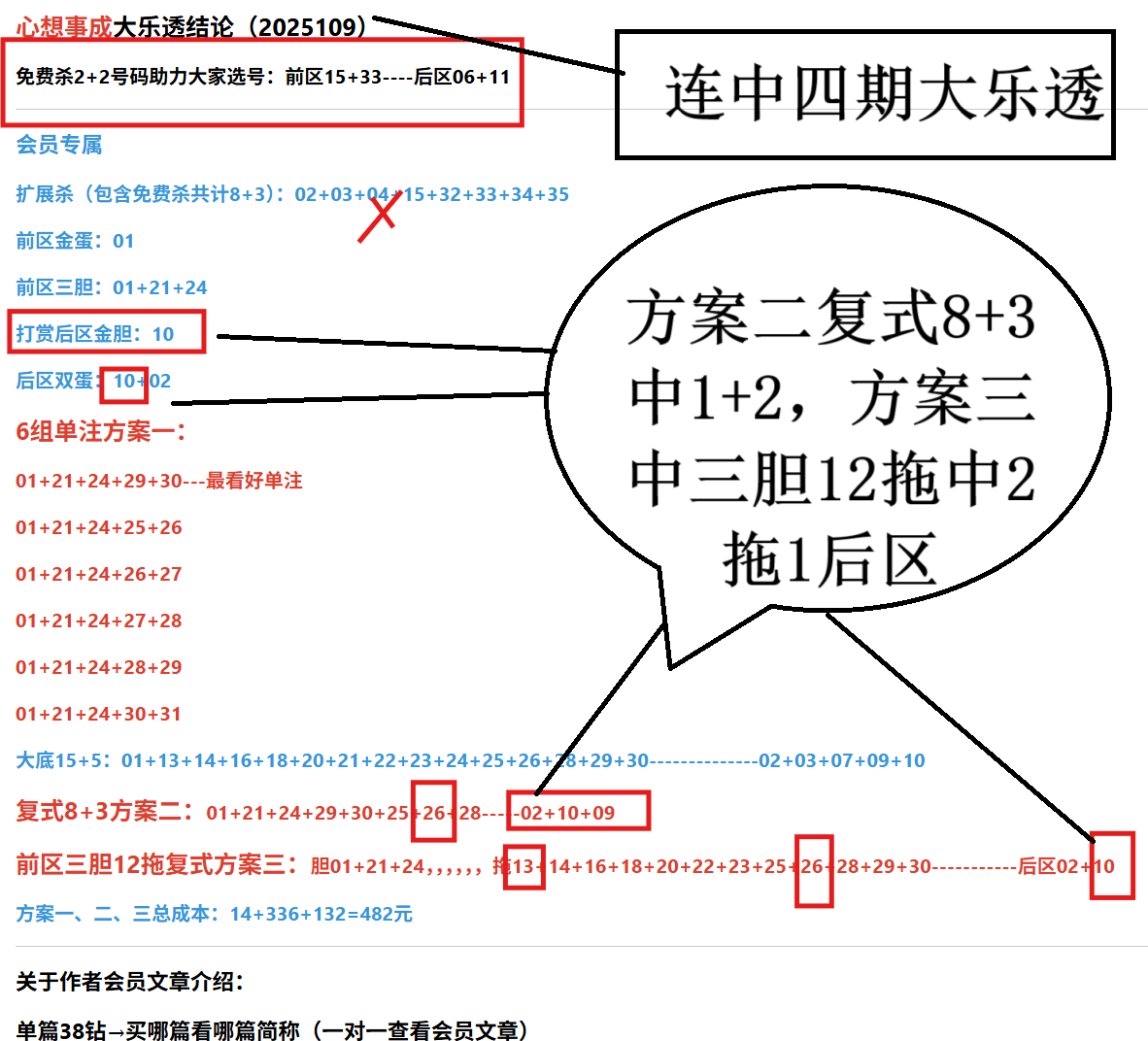 连续4期中奖中奖,上期后区金胆对,大乐透110期优选号码方案分析