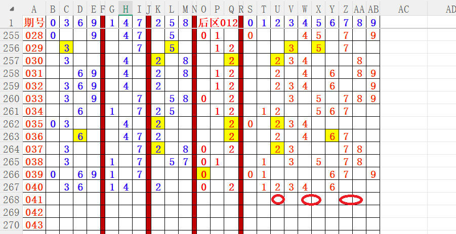 如上图4,012路分析012路,本期重点12路。重点 01 02 03 05 07