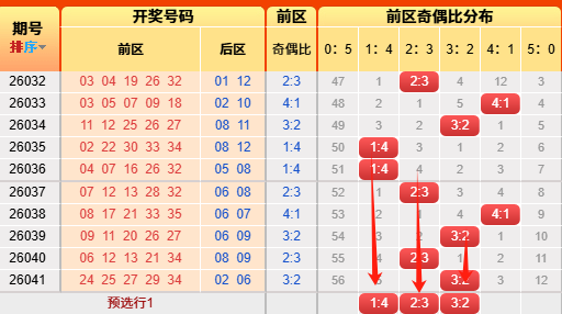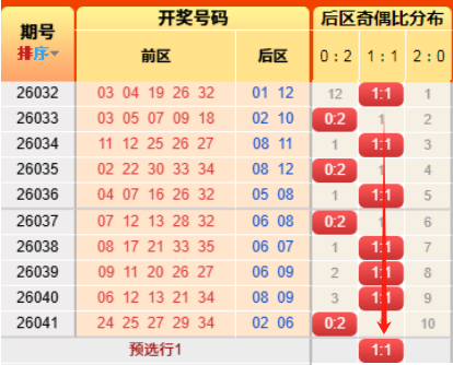 上期后区开出奇偶比为0:2
