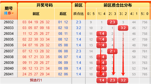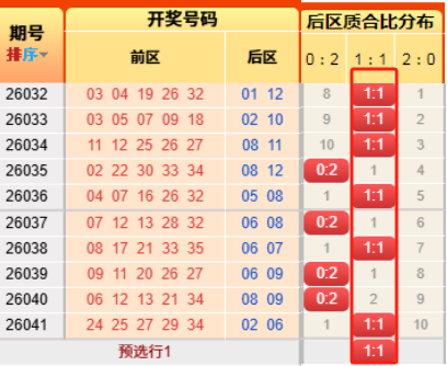上期后区开出质合比为1:1。