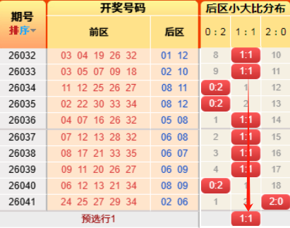 上期后区开出小大比为2:0