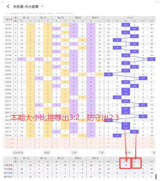 5、大小比:上期开出大小比为1:4,近114期开出4:1出现25次,3:2出现46次,2:3出现49次,1:4出现30次,5:0出现4次,本期推荐出3:2,防守出2:3。