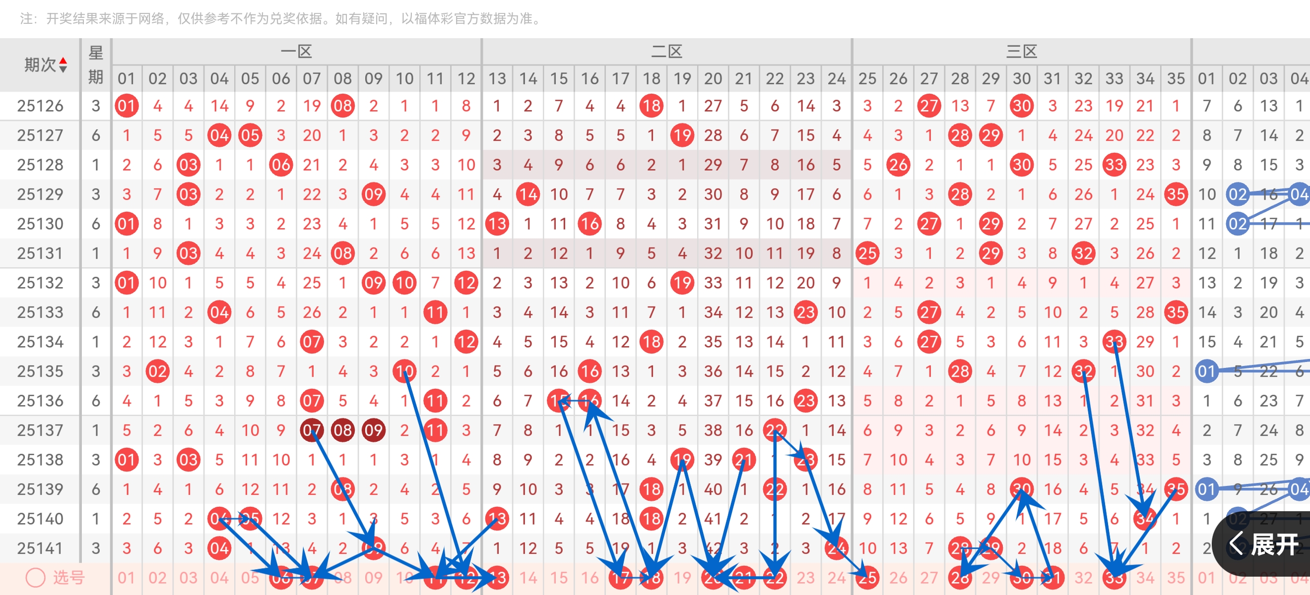 三区冷号 24 、28 、29 同步解冻,二区17、20 成新晋冷码。