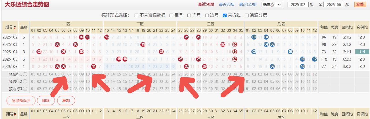 25107期大乐透思路前瞻:关注本期断区调整回补,本期全力冲刺5+2