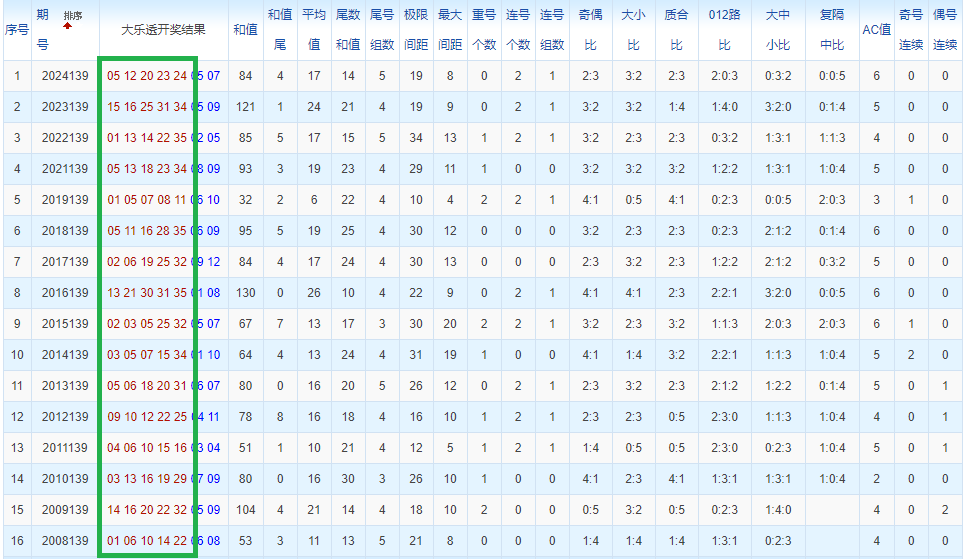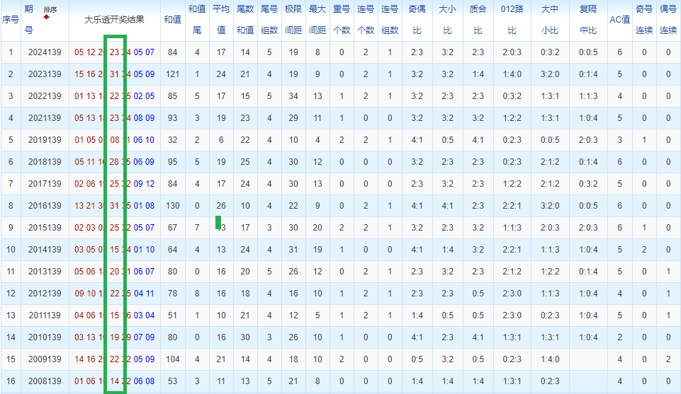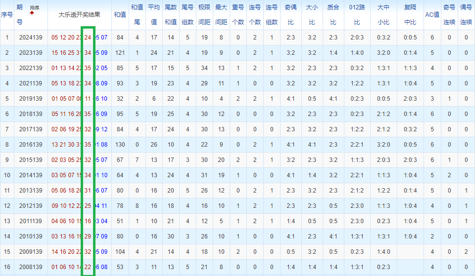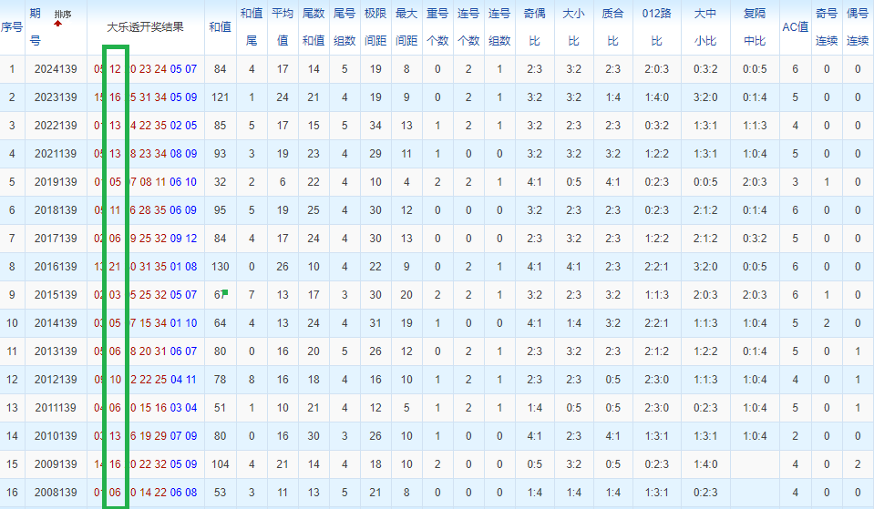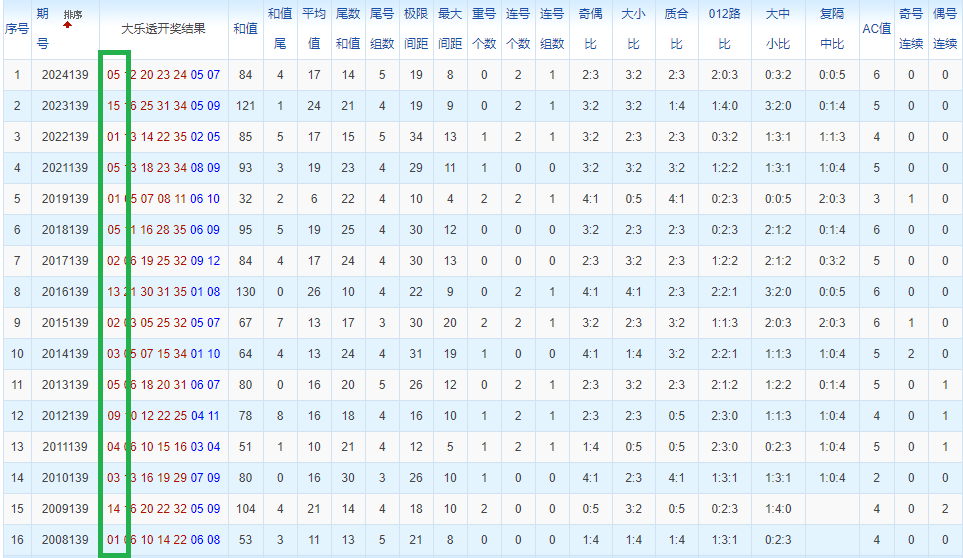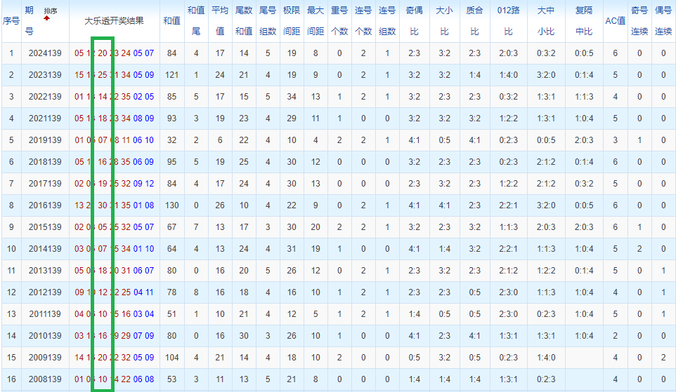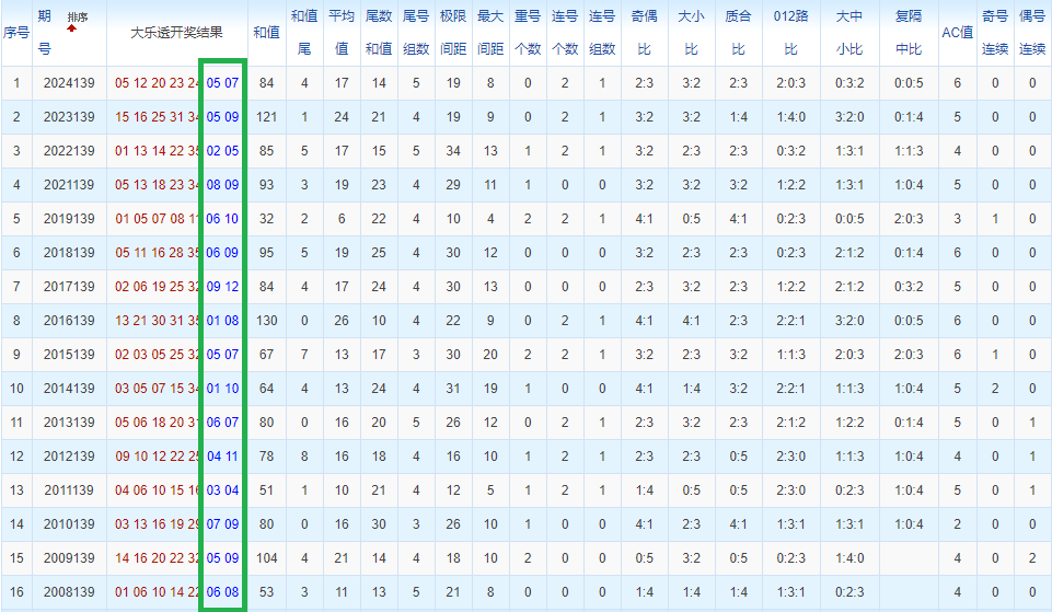 通过观察,我发现往年同期的开奖数据与本期号码之间存在显著关联。具体来说,在前区号码中,从第一位至第五位,通常会有约三个位置上的数字与往年同期相同位置的号码一致;而后区号码中,也有多期开奖结果直接包含了往年同期的数字。因此,我们可以借助往年同期各位置上的号码,作为分析本期开奖情况的重要依据。在此基础上,还可结合往年同期的其他相关条件,进行综合性的号码组合推荐。
