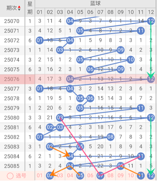 本期警惕全奇组合, 后区推荐关注号码:02、05、07、11、12。另可低温设防04再次开出重号。