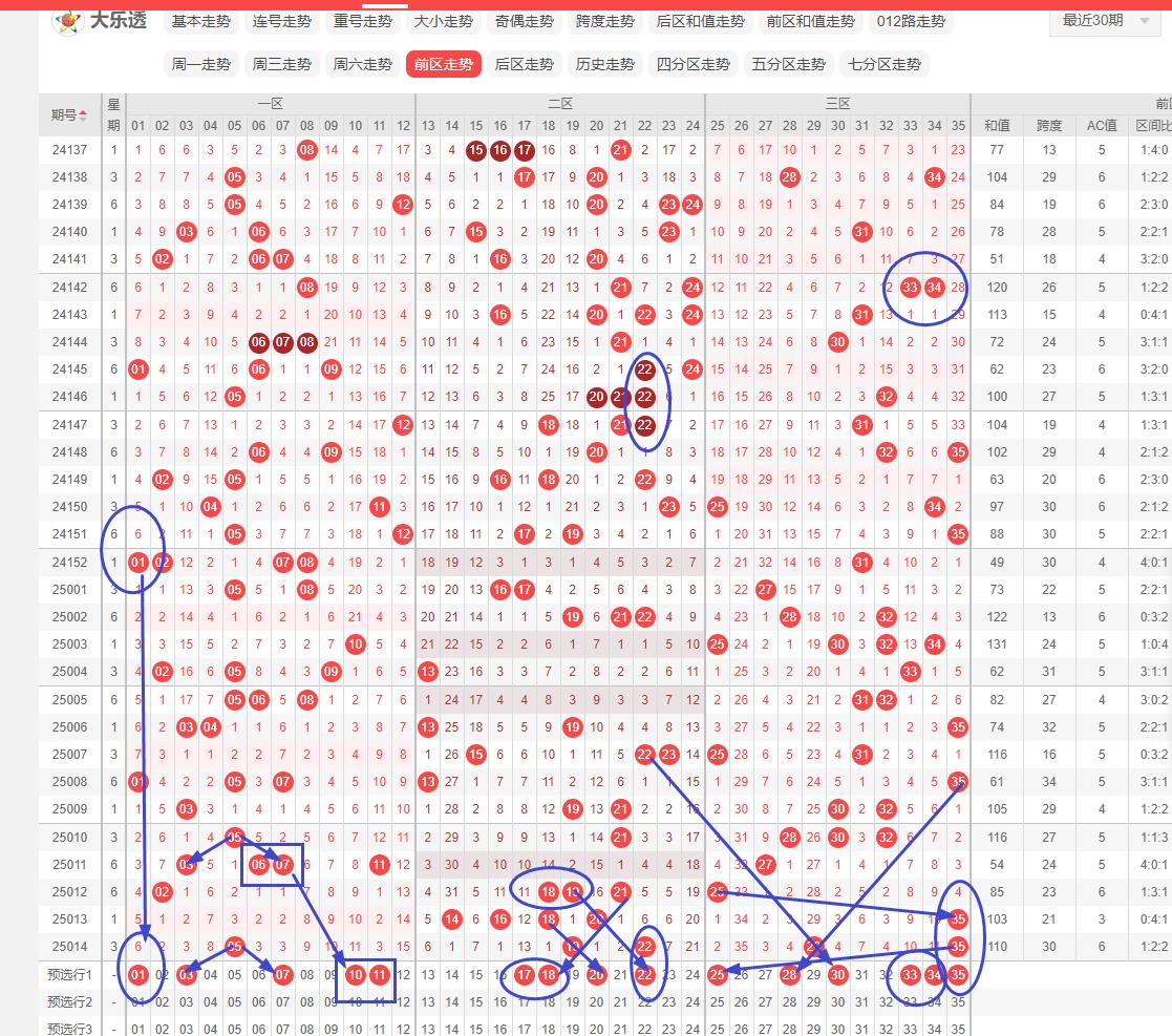 - 连号必出:三区33-34-35为防守重点(适配冷号34回补),或一区10-11组合(热号延伸)