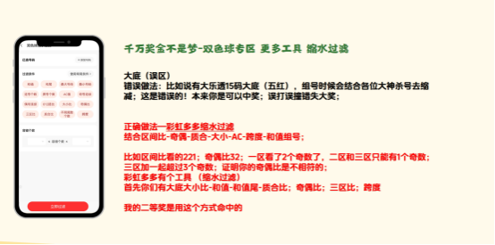 错误做法:比如说有大乐透15码大底(五红),组号时候会结合各位大神杀号去缩减;这是错误的!本来你是可以中奖;误打误撞错失大奖;