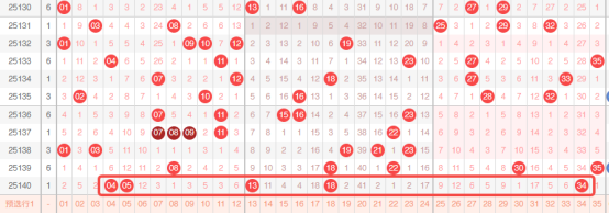 140期冷号:04 05 07 15 17 20 24 25 31 32 33 34推荐关注出号2-3枚出号3没