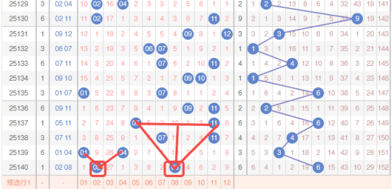 141期前区会经常出重复号码,重码个人建议选择0-1枚重码做为今天开奖号