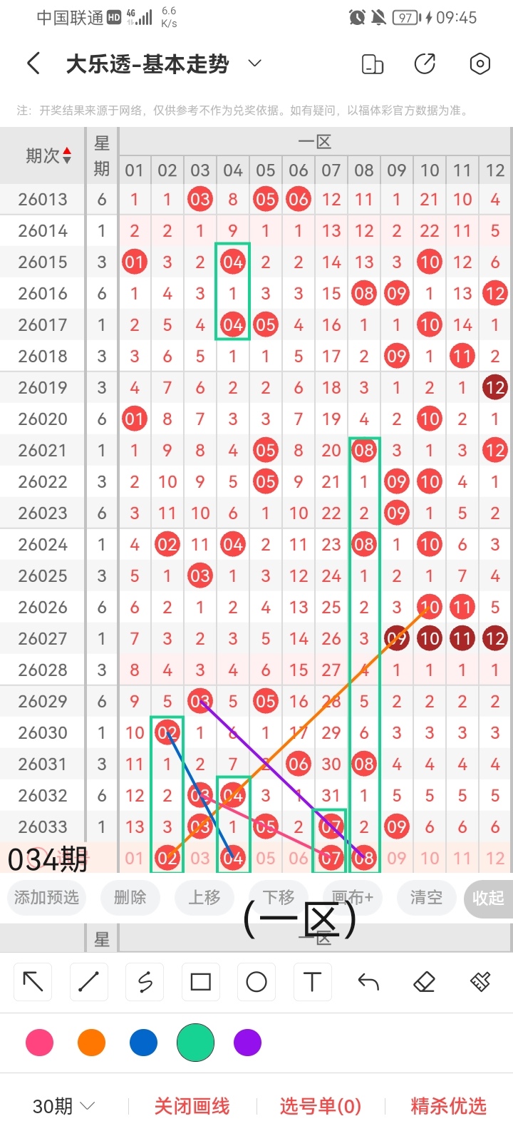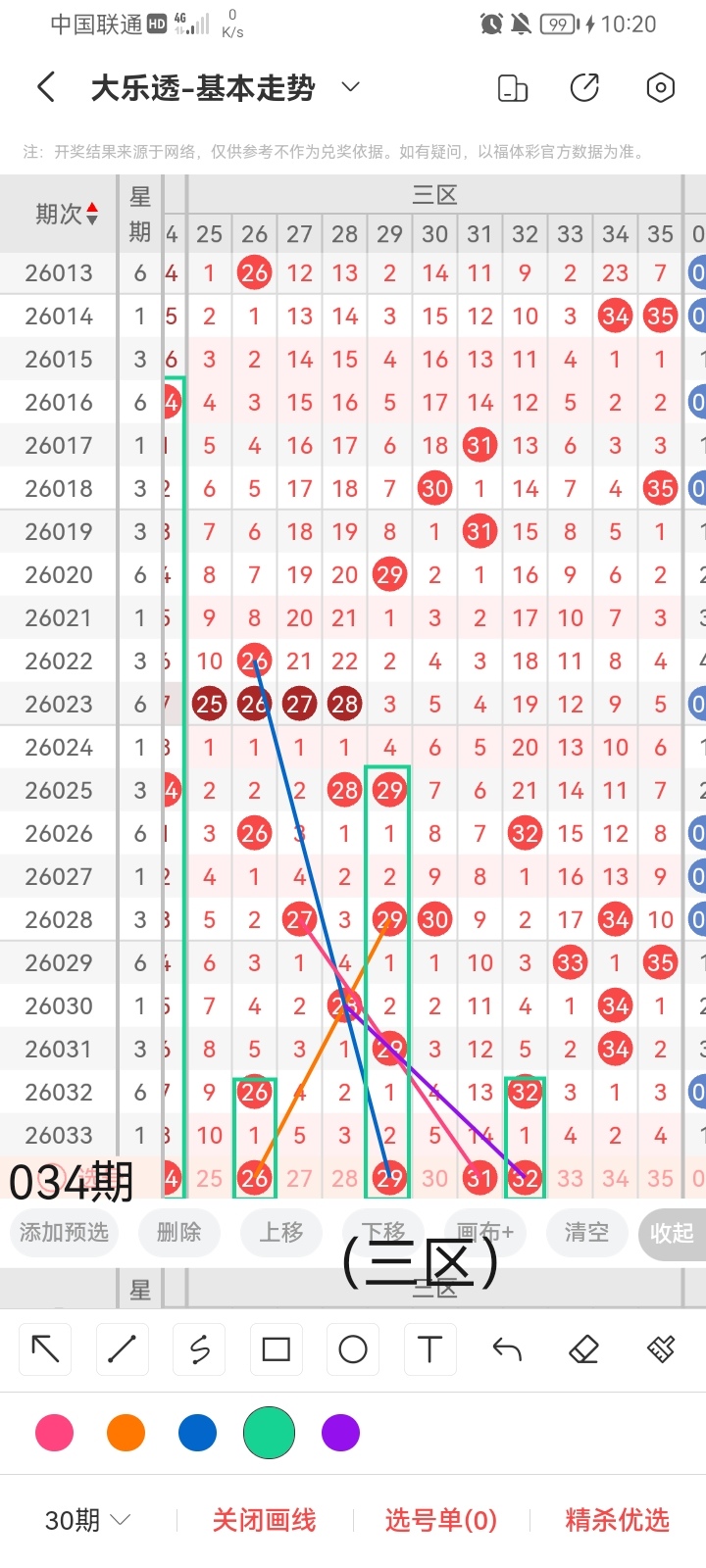 通过以上对上期的简单回顾,下面进入大乐透第2026034期(下面简称本期)的选号分析: