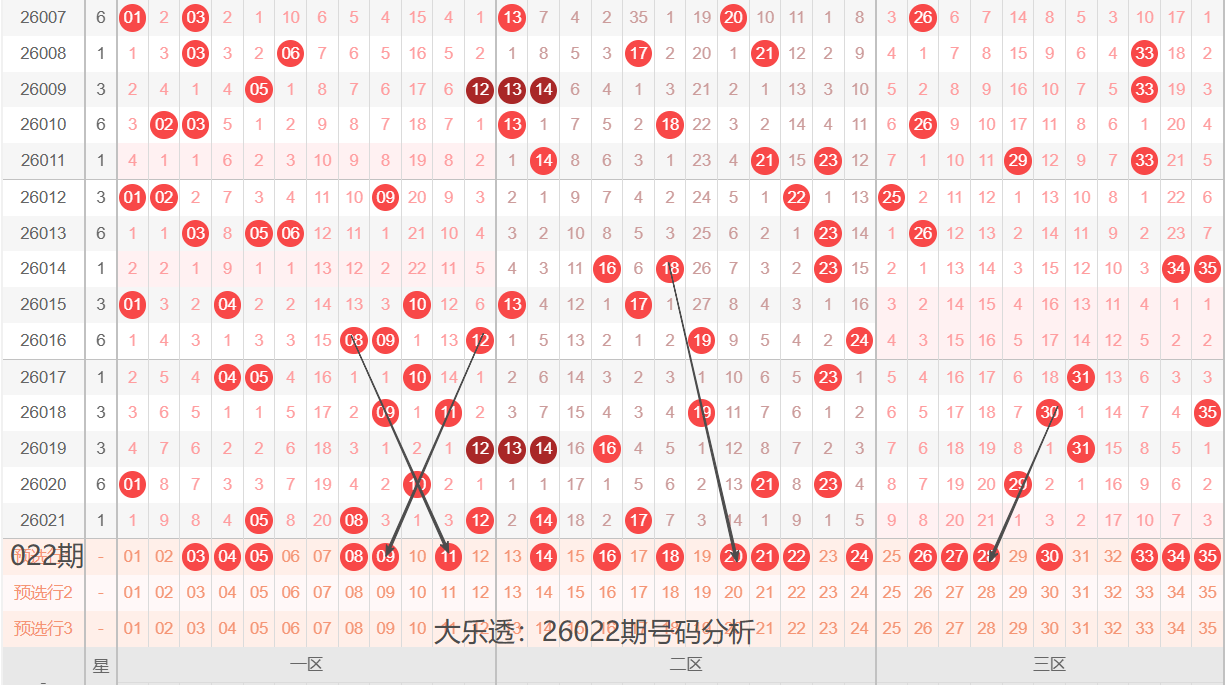 大乐透:26022期号码落位分析(上期3+1)