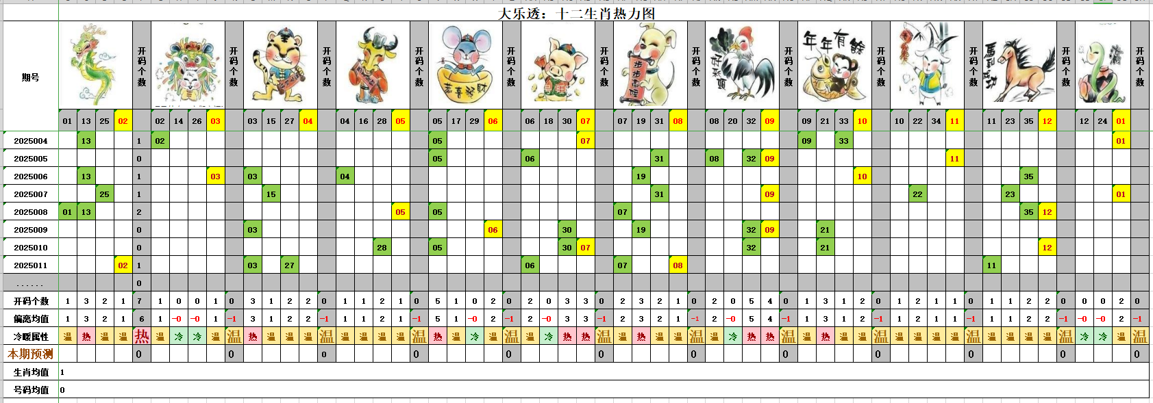 ·购彩工具介绍:“十二生肖热力图”本质上是走势图,是用于研究数字彩走势规律以及数字形态的一种工具。工具最大亮在于对开奖号码的冷热属性另辟蹊径加以分析。大乐透为例,将大乐透47(35+12)个号码分为十二组,每组分别以01至12作为头码,然后以头码为基础,等差递增12的号码就归入该组,如:01、13、25、37(蓝球02)归为第一组,其他分组以此类推47个号码分类进十二生肖表之后,通过个码数量与号码均值的比较(即号码偏离度)可得出个码的冷热属性,通过个肖整体的号码数量与生肖均值的比较(即生肖偏离度)可得出个肖的冷热属性对号码定位上的思考大有裨益。