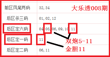 大乐透26009期,上期后区金胆11,双炮5-11,三区比221正确