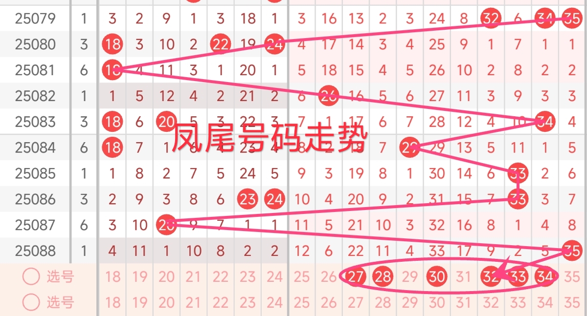 上期凤尾号码为35,振幅上升了15点,开出奇数号码。从近期凤尾号码的走势来看,近期凤尾号码波动较大。上期凤尾号码为35,处于红三区最大号码。上期凤尾号码上升幅度较大,本期出号可能呈下降趋势,预计凤尾号码可能在26 - 34之间。本期还需注意连续多期漏出的号码,需重点关注,有回补凤尾号码的趋势 。综合考虑,本期凤尾号码可以重点关注27、28、30、32、33、34。