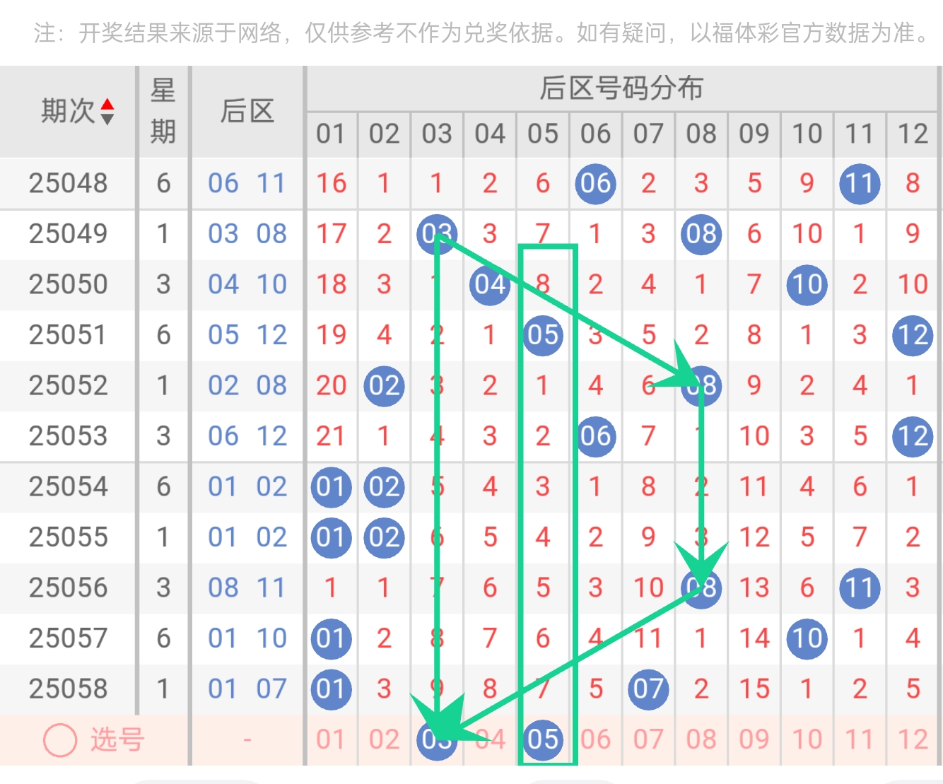 后区:01、03、05、10、12