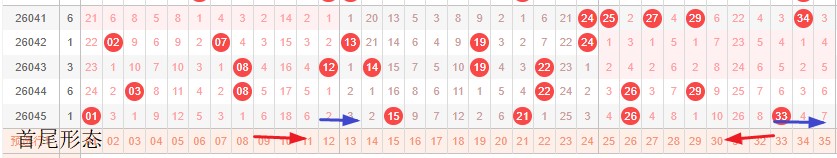如图所示:首尾制约平衡组范围依次为:缩推缩,拉拉? 本期形态范围优先选择红色压缩首尾。由于上期号码处在间隔1分割2组的分割过程第2期分割完成形成形态,本期宜采取继续左推走形成形态,或体现重或连号走势。