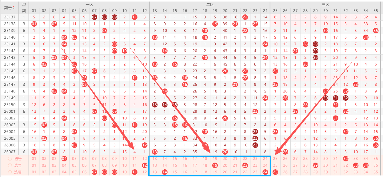 第三区:本期的凤尾,可以考虑32和33,34几个号码,3区号需要考虑25和29这几个号码。