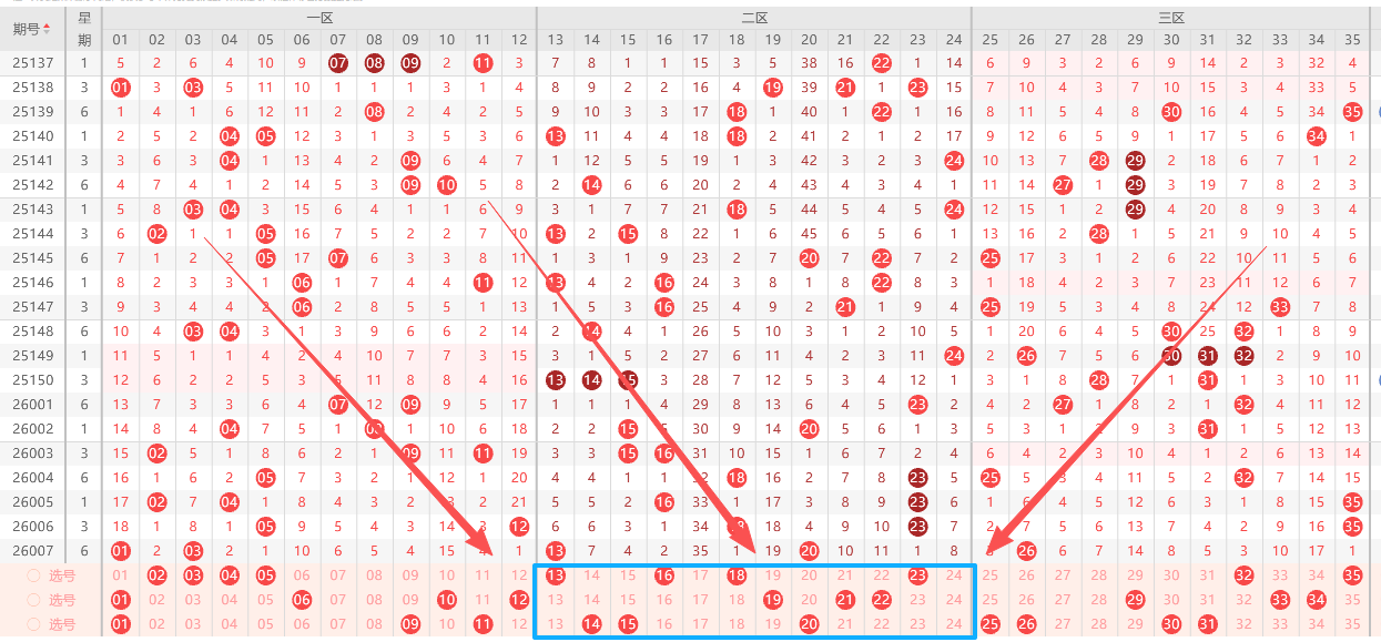 本期3区号码,总体分析如下(蝴蝶根据概率算法,结合大数据统计,总结出一套不错的算法,总体的3区分析如下):