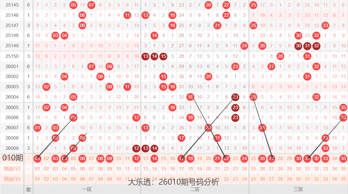 大乐透:26010期落位分析(上期2+1,26年好运连连)